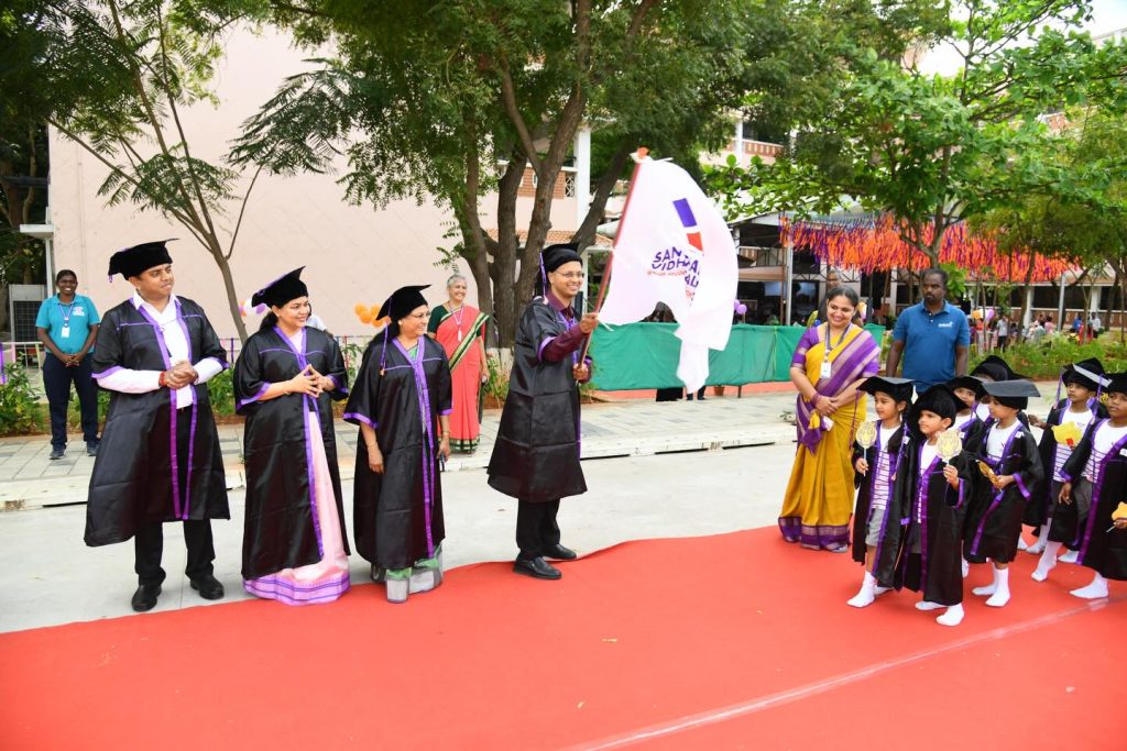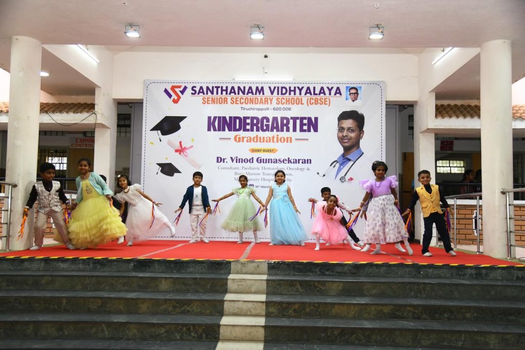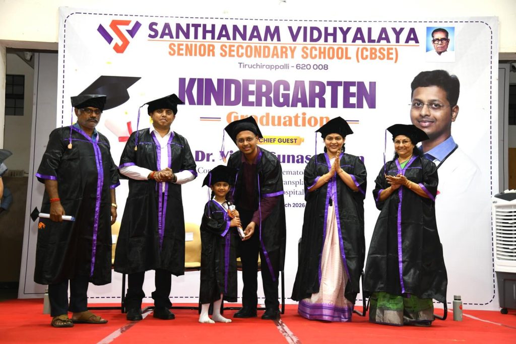 The Chief guest Dr. Vinod Gunasekaran, consultant Pediatrician, Maa Kauvery Hospital, Trichy, in his speech, insisted that children should be provided with balanced nutrition, supportive parenting, sufficient playing and adequate sleeping to make them healthy and happy individuals and felicitated the little Graduates.